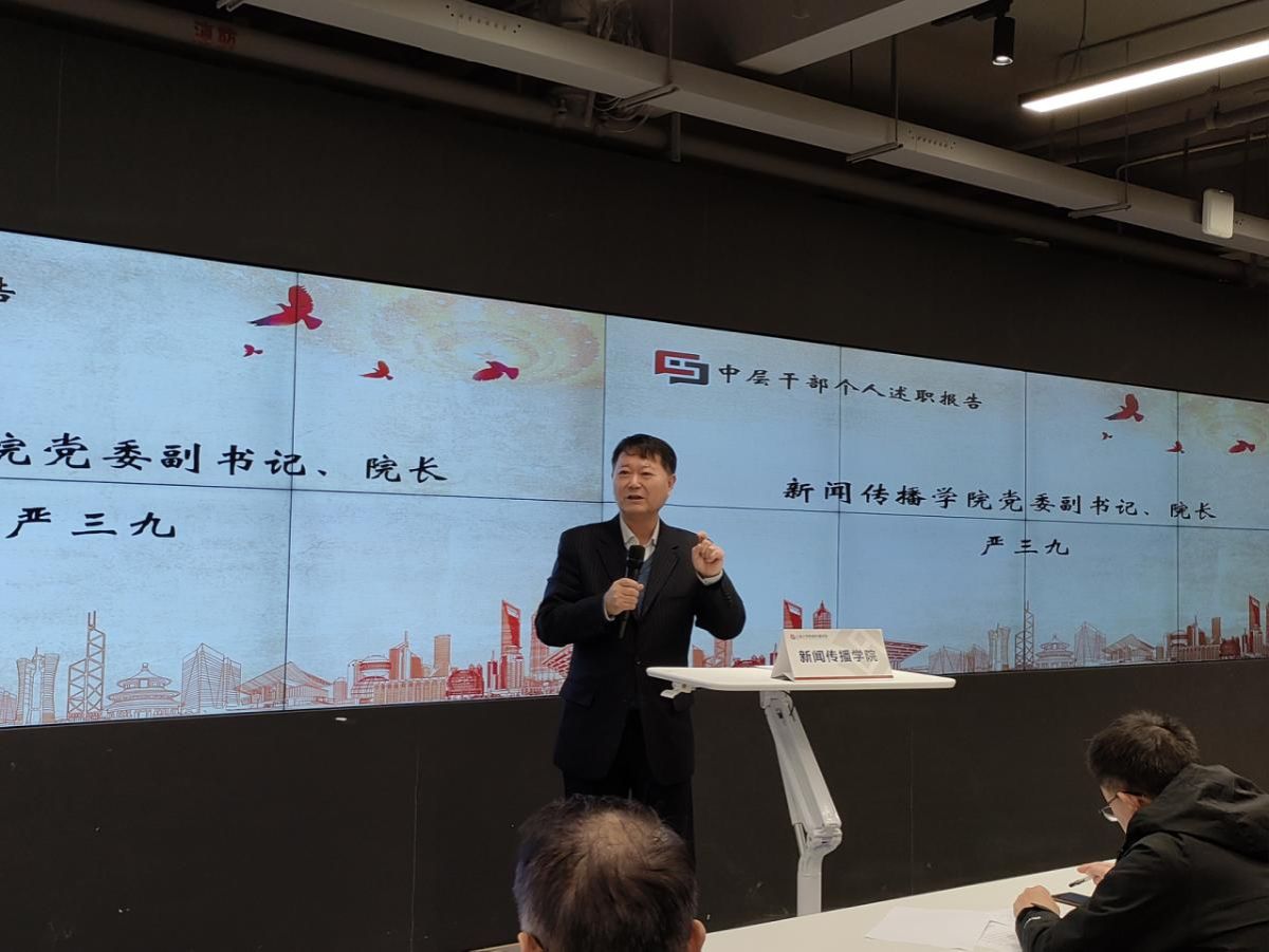 新闻传播学院党委书记王晴川、党委副书记兼院长严三九、党委副书记兼副院长王智君、副院长赵为学、副院长牛盼强和副院长周宇豪,分别作了2024年度中层干部个人述职。他们围绕2024年度重点工作开展情况、特色亮点工作及创新举措、取得的工作成效等方面,分析工作中存在的问题,总结经验,并提出下一步工作计划。