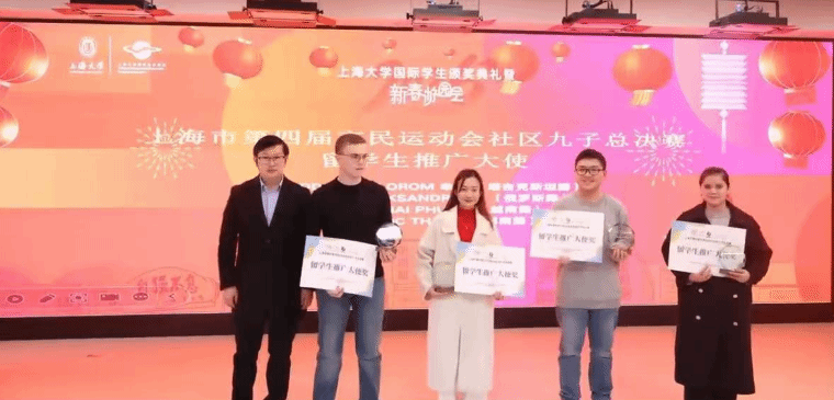 展示环节之后,领导们分别为在上海市九子大赛,国际学生中秋中文诗歌朗诵比赛,国际学生学业奖、实践之星、学术之星、知华传播奖评选中获奖者现场颁发了获奖证书。